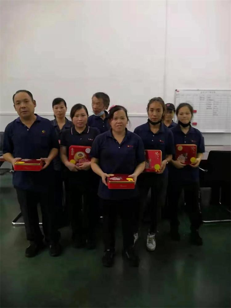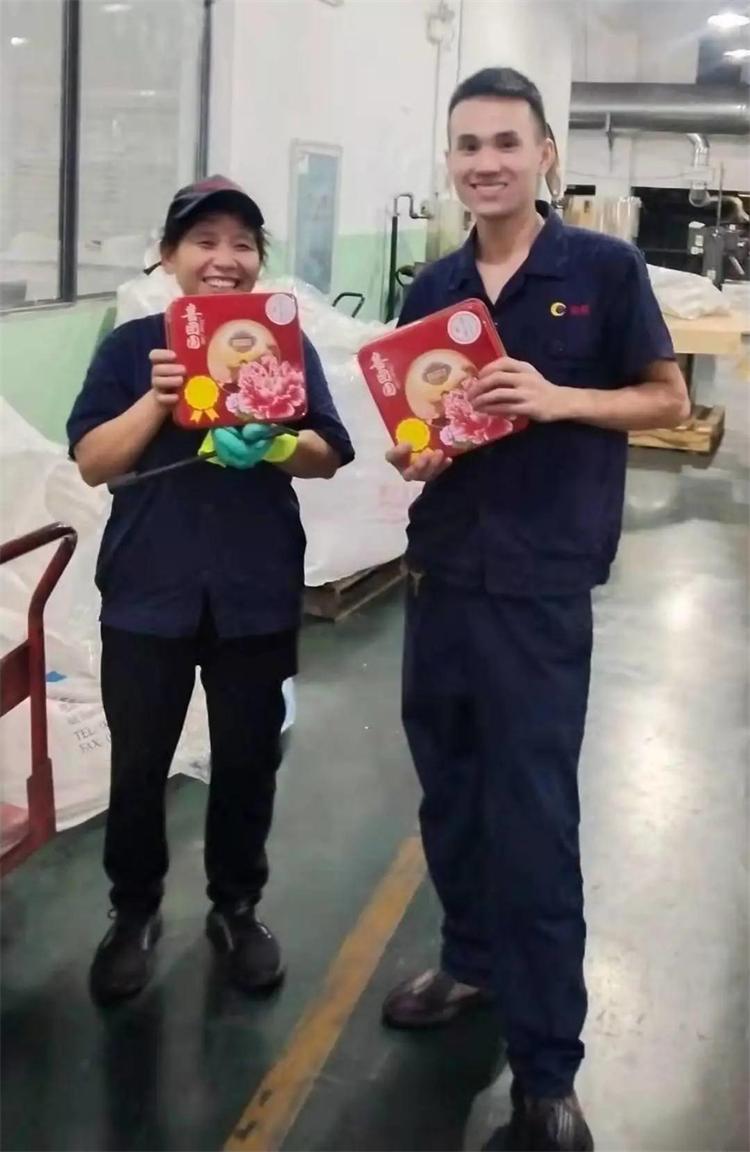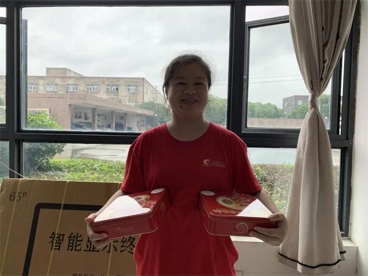 接過中秋禮物,員工臉上流露出幸福的笑容,不僅能吃到象征著團結友愛、幸福美滿的中秋月餅,還能感受到企業濃濃的關懷,內心感到特別幸福。