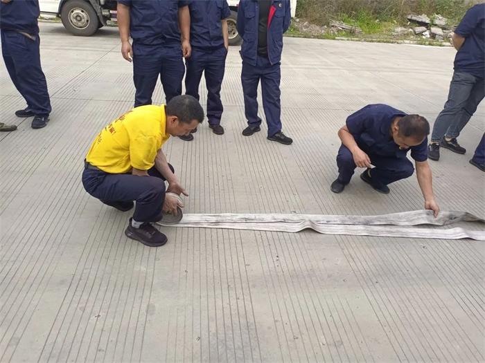 在現場演示環節,消防培訓人員對消防水帶的拋接、水槍拆裝的操作細節著重講解,并進行現場演示。