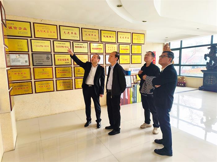 2024年3月25日上午,中國化學纖維工業協會會長陳新偉、東華大學材料科學與工程學院教授陳龍、中國化學纖維工業協會總經濟師李增俊、中國化學纖維工業協會副秘書長吳文靜、中國化學纖維工業協會丙綸分會秘書長竇娟等一行五位嘉賓蒞臨浙江金彩新材料有限公司開展企業走訪參觀工作。