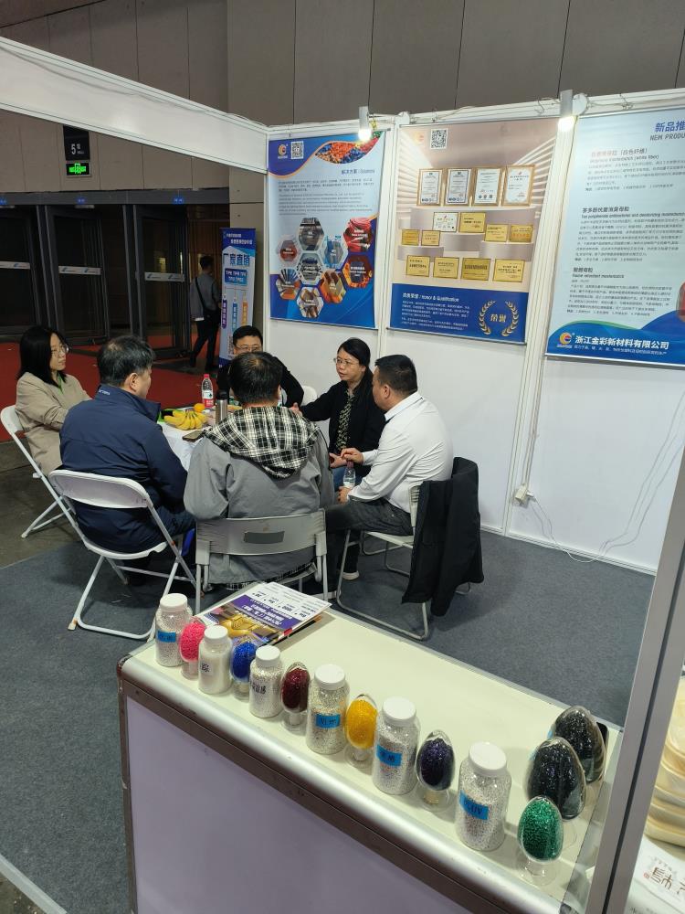 在這一備受矚目的行業(yè)盛會上,金彩新材料位于5號館5F01的展位始終人頭攢動。我們精心布置的展區(qū)全方位展出了高品質(zhì)的色母粒、功能母粒產(chǎn)品。